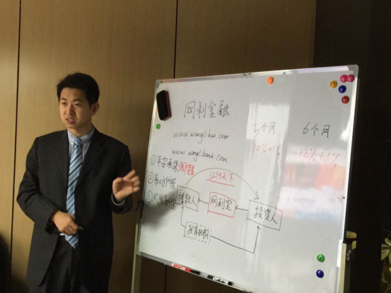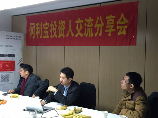 2015年1月24日,網(wǎng)利寶與投資人理財交流會在南京金奧費爾蒙酒店成功舉辦。網(wǎng)利寶南京地區(qū)十余位投資人與公司高管面對面交流。網(wǎng)利金融執(zhí)行總經(jīng)理蔡景鐘、網(wǎng)利寶金融產(chǎn)品總監(jiān)徐海通分別介紹了公司基本情況、發(fā)展歷程、產(chǎn)品結(jié)構(gòu)、風(fēng)控措施、并解答投資者疑問、介紹公司下一步的發(fā)展規(guī)劃。見面會受到投資人的認(rèn)可;投資人均表示對網(wǎng)利寶的理財產(chǎn)品更加有信心。
