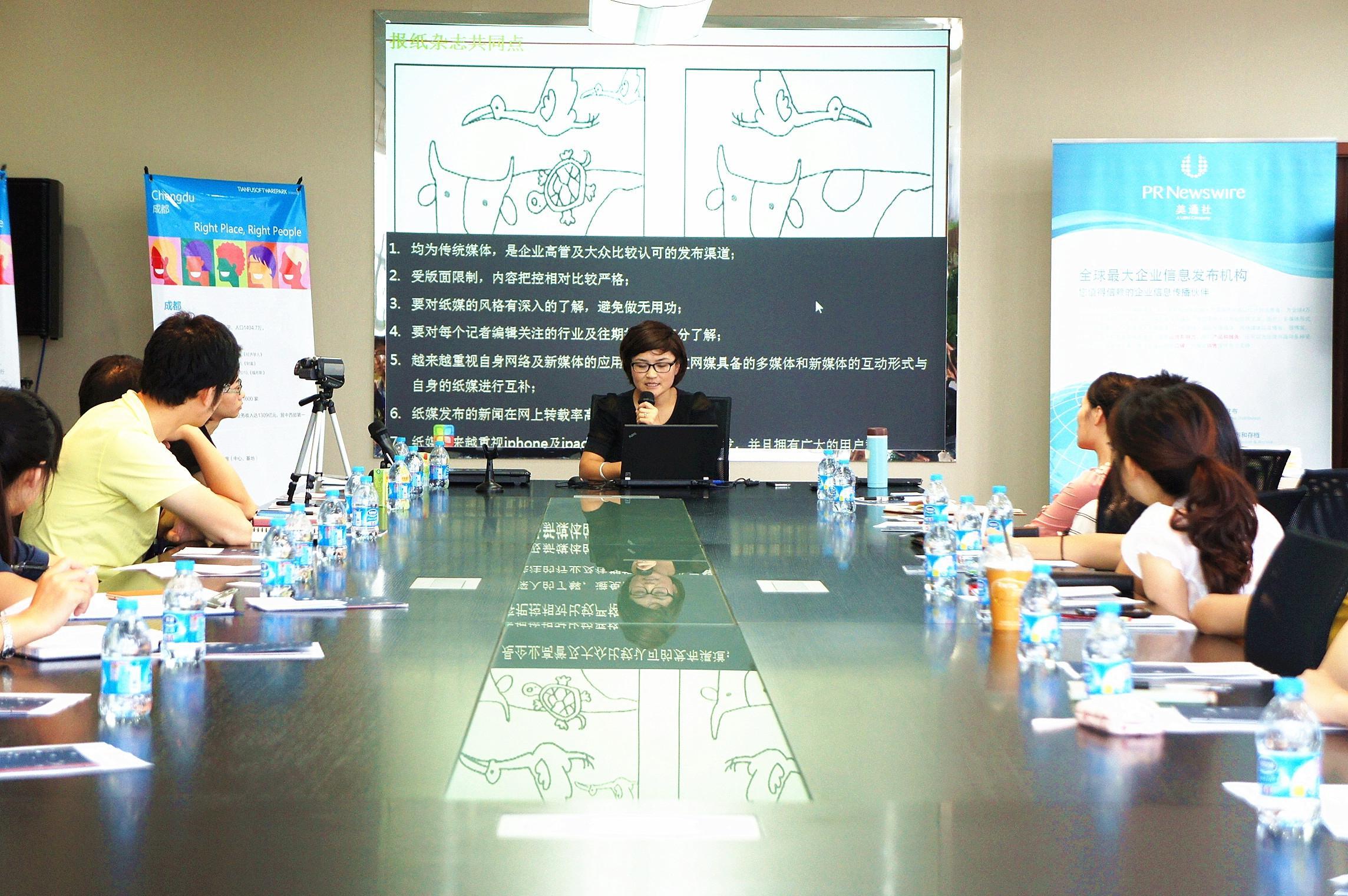 成都2012年7月16日電 /美通社亞洲/ -- 7月12日,由美通社攜手天府軟件園共同打造的“新傳播茶會(huì)”在成都天府軟件園C區(qū)成功舉辦。此次以“企業(yè)傳播與推廣”為主題的茶會(huì)吸引了近五十家企業(yè)的代表參加,他們包括吉?jiǎng)倏萍肌部扑架浖?、美幻科技、華邁通信、中智、飛魚(yú)星科技、木瓜移動(dòng)等。演講嘉賓美通社媒體關(guān)系總監(jiān)楊麗娜、IT168和泡泡網(wǎng)成都站負(fù)責(zé)人劉斌分別就企業(yè)傳播技巧、危機(jī)公關(guān)、互聯(lián)網(wǎng)推廣與營(yíng)銷等話題向與會(huì)嘉賓進(jìn)行了分享。
