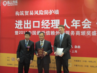 北京2011年1月12日電 /美通社亞洲/ -- 2011年1月11日,在機(jī)械工業(yè)出版社舉行了由《進(jìn)出口經(jīng)理人》雜志社主辦的“2010中國外貿(mào)服務(wù)信譽(yù)獎(jiǎng)”頒獎(jiǎng)儀式。通過評(píng)選,TUV 南德意志集團(tuán)(TUV SUD)代表第三方檢測認(rèn)證行業(yè),獲得“2010中國外貿(mào)服務(wù)信譽(yù)獎(jiǎng)”。TUV 南德意志集團(tuán)大中華區(qū)高級(jí)副總裁、北區(qū)董事總經(jīng)理朱文才先生出席了頒獎(jiǎng)儀式。