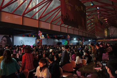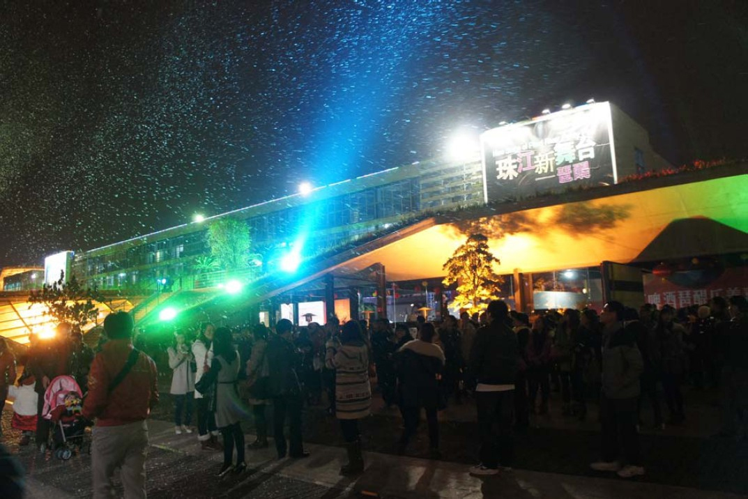 活動(dòng)還沒開場,簽到處已排起了長龍。璀璨的珠江邊飄起了漫天雪花,在這醉人的氣氛下,再也擋不住到場單身男女們一顆顆火熱的心?;顒?dòng)現(xiàn)場特別安排了許多精彩節(jié)目、知名樂隊(duì)演繹,啤酒暢飲無限,現(xiàn)場氣氛非常熱烈?;顒?dòng)主辦方還特別分出了舞臺(tái)區(qū)、游戲區(qū)、交流區(qū)、自由活動(dòng)區(qū)四大區(qū)域,每個(gè)區(qū)域都精心設(shè)置了有趣的破冰互動(dòng):“拋繡球、愛情大力士、桃花朵朵開、快樂兔子舞……等等”每個(gè)節(jié)目都有著特定的意義,貫穿于這些陌生男女從陌生到產(chǎn)生好感,再到熟悉交流的全過程。除此外,現(xiàn)場還設(shè)有愛情緣分墻,每位參與者可將自己的個(gè)性標(biāo)簽和愛情宣言,張貼到緣分墻上,留下新年的第一個(gè)愿望。