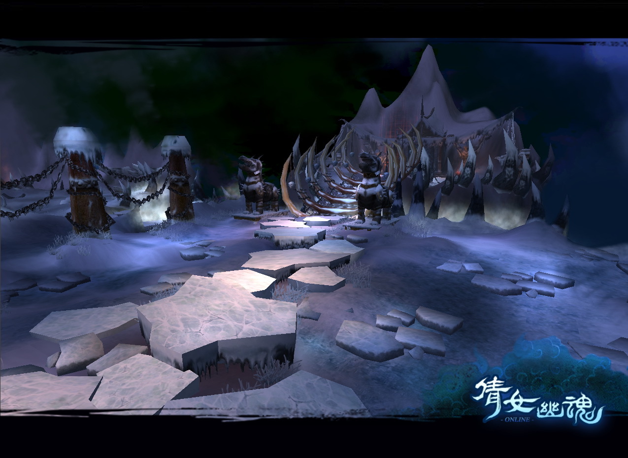 (圖3:《倩女幽魂 Online》游戲截圖,冰雪覆蓋,鬼氣森然)