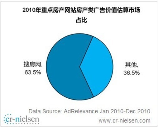 北京2011年2月9日電 /美通社亞洲/ -- CR-Nielsen(尼爾森互聯(lián)網研究)《2010年中國房地產網絡展示廣告市場研究項目報告》(以下簡稱報告)顯示,2010年中國房地產網絡展示廣告市場呈持續(xù)增長態(tài)勢,廣告推廣項目、廣告主數(shù)、創(chuàng)意數(shù)相比2009年均有穩(wěn)健增長。搜房網在這三個核心考核指標中以六成以上的比例高居榜首,其中在房產類廣告主指標上優(yōu)勢顯著,行業(yè)占比高達73.7%。