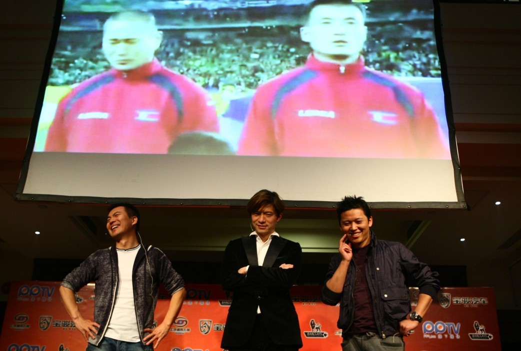 上海2011年4月18日電 /美通社亞洲/ -- 17日晚,PPTV 網(wǎng)絡(luò)電視直播英超賽事第2場地面活動在上海一家別具情調(diào)的歐式酒吧正式開煲。直播經(jīng)驗(yàn)豐富的 PPTV 網(wǎng)絡(luò)電視首發(fā)強(qiáng)勢組合“蟹皇粥”,黃健翔、謝暉、周亮三位著名解說主持人亮相當(dāng)晚阿森納對陣?yán)锲株?duì)的比賽解說中。令人意外的是,在當(dāng)晚的解說中,一組來自民間自發(fā)組成的解說隊(duì) -- “菜泡飯”,公開踢館,活動現(xiàn)場一片嘩然,人氣爆棚,三位解說主播表示會積極接戰(zhàn)。(PPTV 網(wǎng)絡(luò)電視英超直播地址:http://yingchao.pptv.com/。)