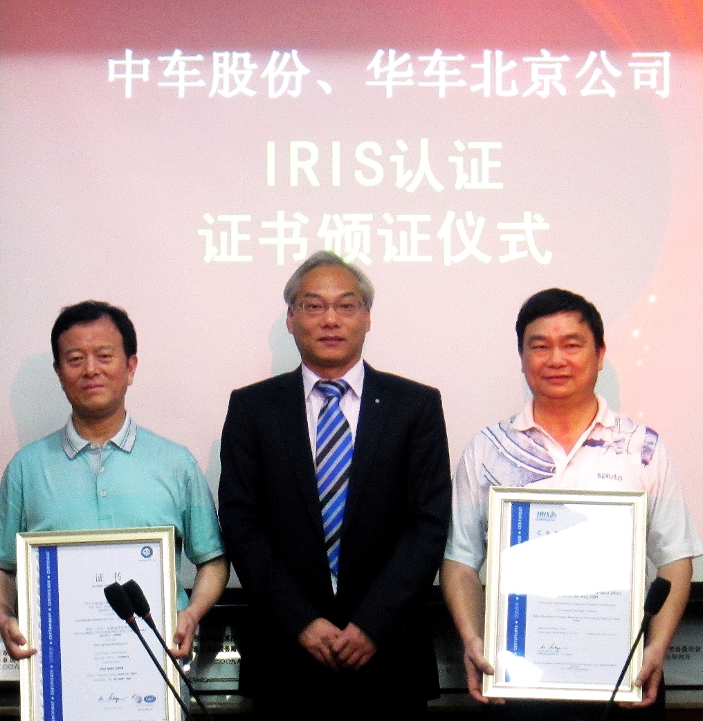 廣州2011年5月16日電 /美通社亞洲/ -- 近期,TUV 南德意志集團(tuán)(以下簡稱 TUV SUD )與廣州中車軌道交通裝備股份有限公司(以下簡稱中車股份)、廣州中車子公司 -- 華車北京交通裝備有限公司(華車北京)在廣州中車公司舉行了 IRIS 國際鐵路工業(yè)標(biāo)準(zhǔn)管理體系的頒證儀式。