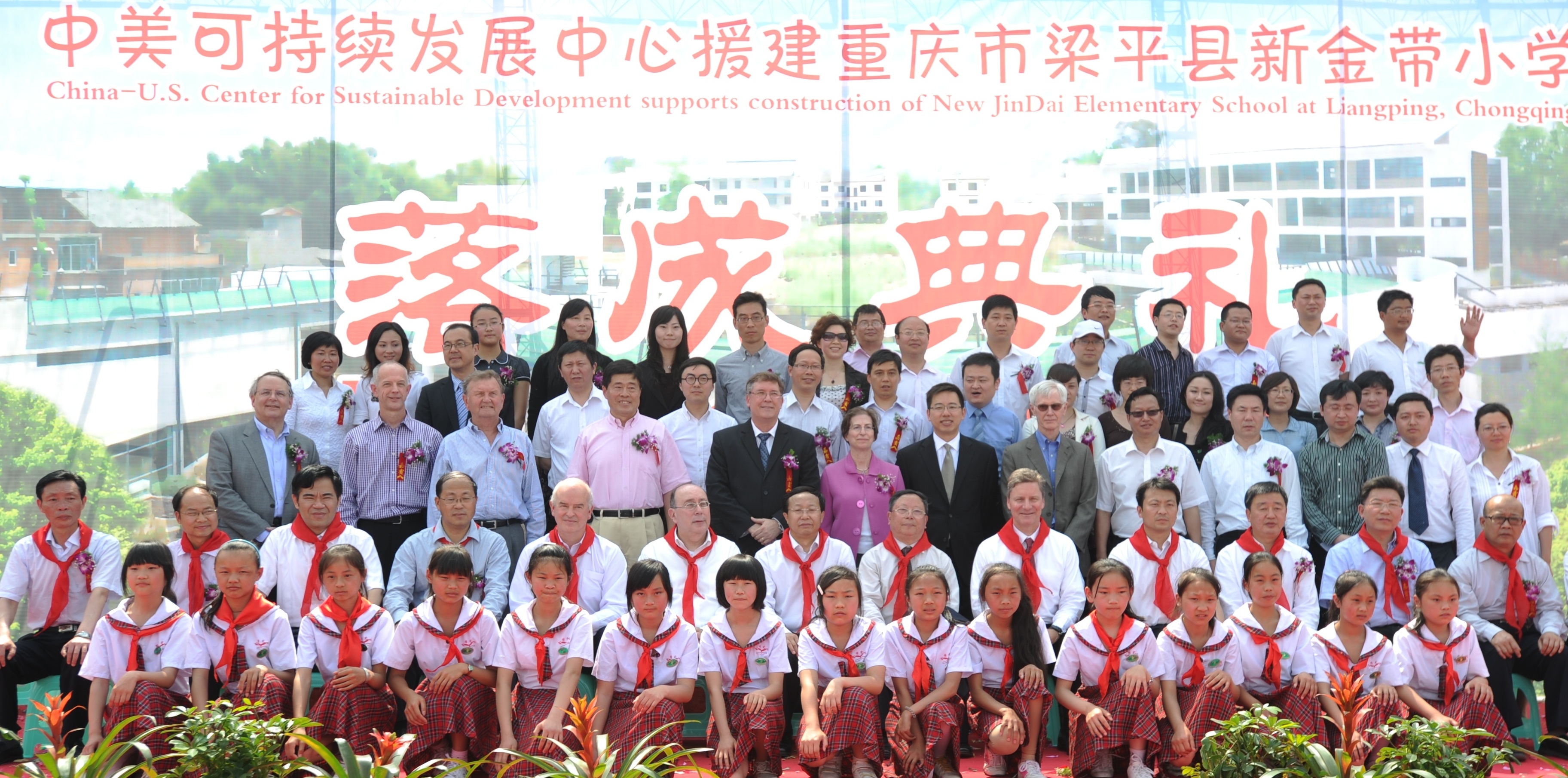 中美可持續(xù)發(fā)展中心美方理事會主席 Gary Dirks、中國21世紀議程管理中心主任郭日生、中國宋慶齡基金會基金部副部長李曉峰、中華環(huán)?;饡貢L李偉、沃爾瑪中國公司事務(wù)副總裁傅希孟(Barry Friedman)、沃爾瑪全球采購副總裁藍柯(Ken Lanshe)、沃爾瑪公司國際部可持續(xù)發(fā)展高級總監(jiān)柯培新(Beth Keck)等嘉賓及數(shù)十名來自沃爾瑪重慶各商場的員工代表出席了新校園落成儀式。沃爾瑪還向新金帶小學(xué)捐贈了師生急需的電腦等價值萬元的學(xué)習(xí)及體育用品。