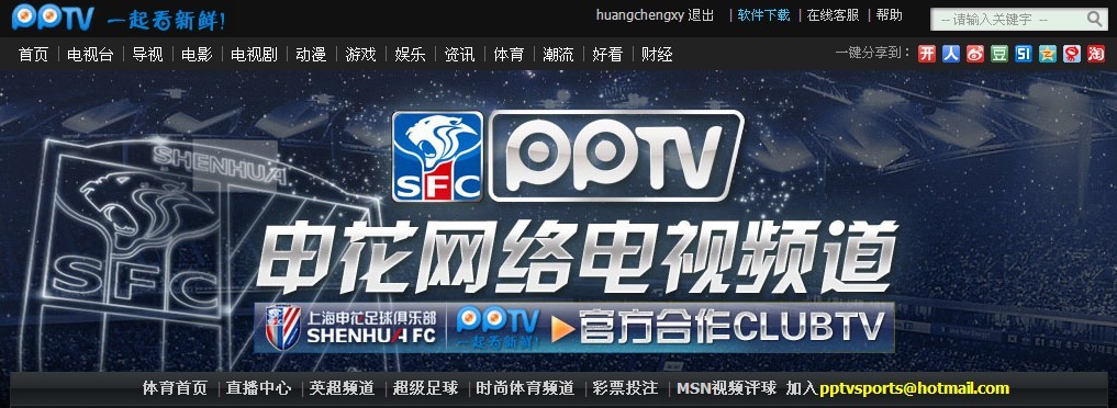 PPTV 網(wǎng)絡(luò)電視申花頻道開創(chuàng)了國內(nèi)體育俱樂部電視臺新模式,全線報道了中超、亞冠訓(xùn)練、例行發(fā)布會、球員專訪及俱樂部各類公關(guān)活動,受到廣大球迷熱情追捧。4月6日,申花客場和悉尼 FC 的亞冠比賽直播,同時在線人數(shù)突破20萬,申花網(wǎng)絡(luò)電視頻道突破了傳統(tǒng)電視平臺收視數(shù)據(jù);4月10日,上海申花客場和遼寧隊的中超比賽,同時在線人數(shù)再次突破20萬,申花網(wǎng)絡(luò)電視頻道品牌形成了一定影響力;5月15日上海申花主場和天津的比賽中,PPTV 網(wǎng)絡(luò)電視體育主播周亮、明星球員謝暉帶來具有濃郁地域特色的網(wǎng)絡(luò)解說,這是繼“英超蟹皇粥”主題直播板塊之后, PPTV 網(wǎng)絡(luò)電視推出的又一個更具有互聯(lián)網(wǎng)特質(zhì)的體育直播主題板塊,當天同時在線人數(shù)突破了28萬,創(chuàng)下互聯(lián)網(wǎng)直播國內(nèi)賽事的新紀錄。