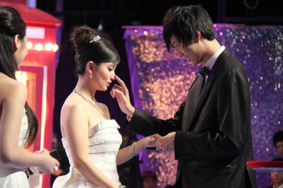 主辦方特意邀請了珍愛網(wǎng)的創(chuàng)辦人李松博士到《百里挑一》的節(jié)目現(xiàn)場,為這對情侶做證婚人,見證他們的結(jié)合。李松博士的一句話概括了這對璧人的愛情,“‘心有靈犀一點通’,他們之間的真愛緣自珍愛,情定《百里挑一》,攜手走過相知相戀、相親相愛,他們的感情是真摯而感動的。”