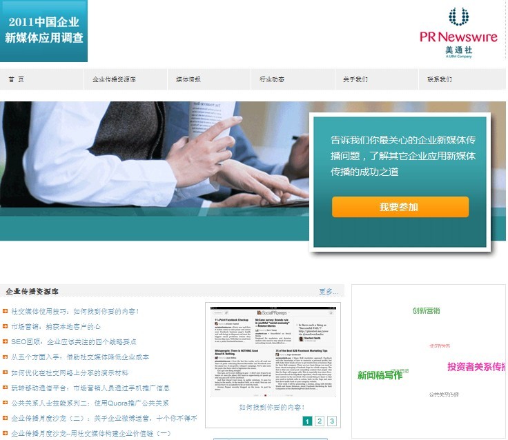 北京2011年6月28日電 /美通社亞洲/ -- 美通社日前正式啟動了2011中國企業(yè)新媒體應(yīng)用調(diào)查的線上調(diào)查部分。本次調(diào)查將圍繞中國企業(yè)在包括微博、社交媒體在內(nèi)的新媒體領(lǐng)域的傳播策略、方式以及相關(guān)預(yù)算投放情況,從多方面里探索中國企業(yè)在新媒體應(yīng)用方面的整體狀況,以期以事實和數(shù)字為基礎(chǔ),為中國企業(yè)特別是大量尚未或較少涉足新媒體傳播的企業(yè)提供參考。調(diào)查將通過 minisite、newsletter、微博、社交網(wǎng)站等多種渠道在企業(yè)群體中創(chuàng)造廣泛影響,并通過美通社媒體茶會以及各類行業(yè)會議發(fā)放問卷進(jìn)行線下調(diào)查。您可以登錄2011中國企業(yè)新媒體應(yīng)用調(diào)查首頁了解此次活動的詳情,或者登錄問卷頁直接參加問卷調(diào)查。