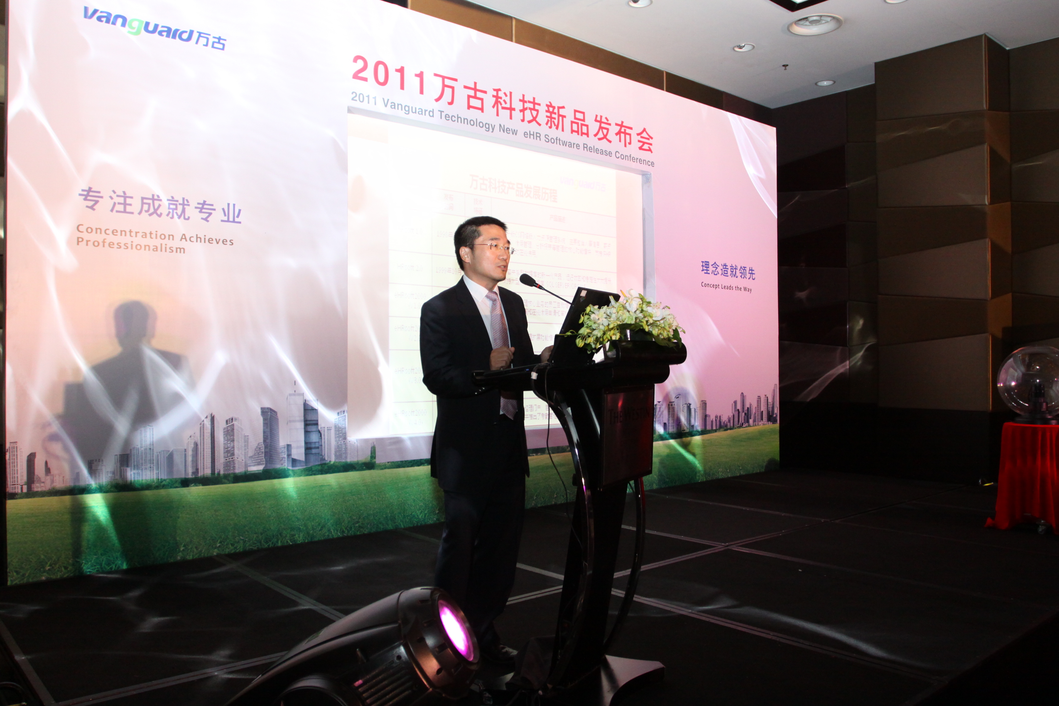 新品發(fā)布會(huì)在悠揚(yáng)的音樂中開場,活動(dòng)氣氛被成功調(diào)動(dòng)。隨后,萬古科技總經(jīng)理崔堃首先致辭。他表示:“萬古科技作為中國領(lǐng)先的 eHR 軟件和服務(wù)提供商,在13年的發(fā)展歷程中,秉承‘用戶第一’的服務(wù)理念,不斷創(chuàng)新始終走在行業(yè)的最前列。2002年我們率先發(fā)布基于 B/S 操作方式的 eHR 系統(tǒng) eHRsoft2000,實(shí)現(xiàn)了全員人力資源管理。今天我們?cè)谶@里發(fā)布 Vantop,這是一款‘有思想’的 eHR 系統(tǒng),我們堅(jiān)信它標(biāo)志著未來中國 eHR 系統(tǒng)的發(fā)展方向。在此,也預(yù)祝萬古科技新產(chǎn)品發(fā)布會(huì)圓滿成功!”崔堃總經(jīng)理的致辭令到場來賓對(duì)萬古科技即將發(fā)布的新產(chǎn)品充滿期待。