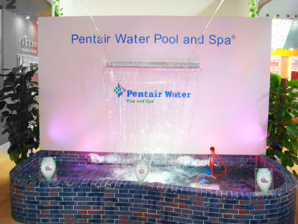 展會期間,流動的水景是濱特爾展位的一大亮點,兩米寬的水幕瀑布不間斷地營造出晶瑩剔透的水簾效果,在五彩繽紛的燈光襯托下顯得格外引人矚目。魔力光泉作為今年濱特爾泳池業(yè)務(wù)的新品,在展臺兩側(cè)向中心噴射出美麗的弧線。更令人驚訝的是,噴嘴噴出的拋物線就像一根玻璃管,沒有任何水花濺出,隨著 LED 燈不斷變化色彩,整個水景引起了專業(yè)人士及所有參觀者的興趣。