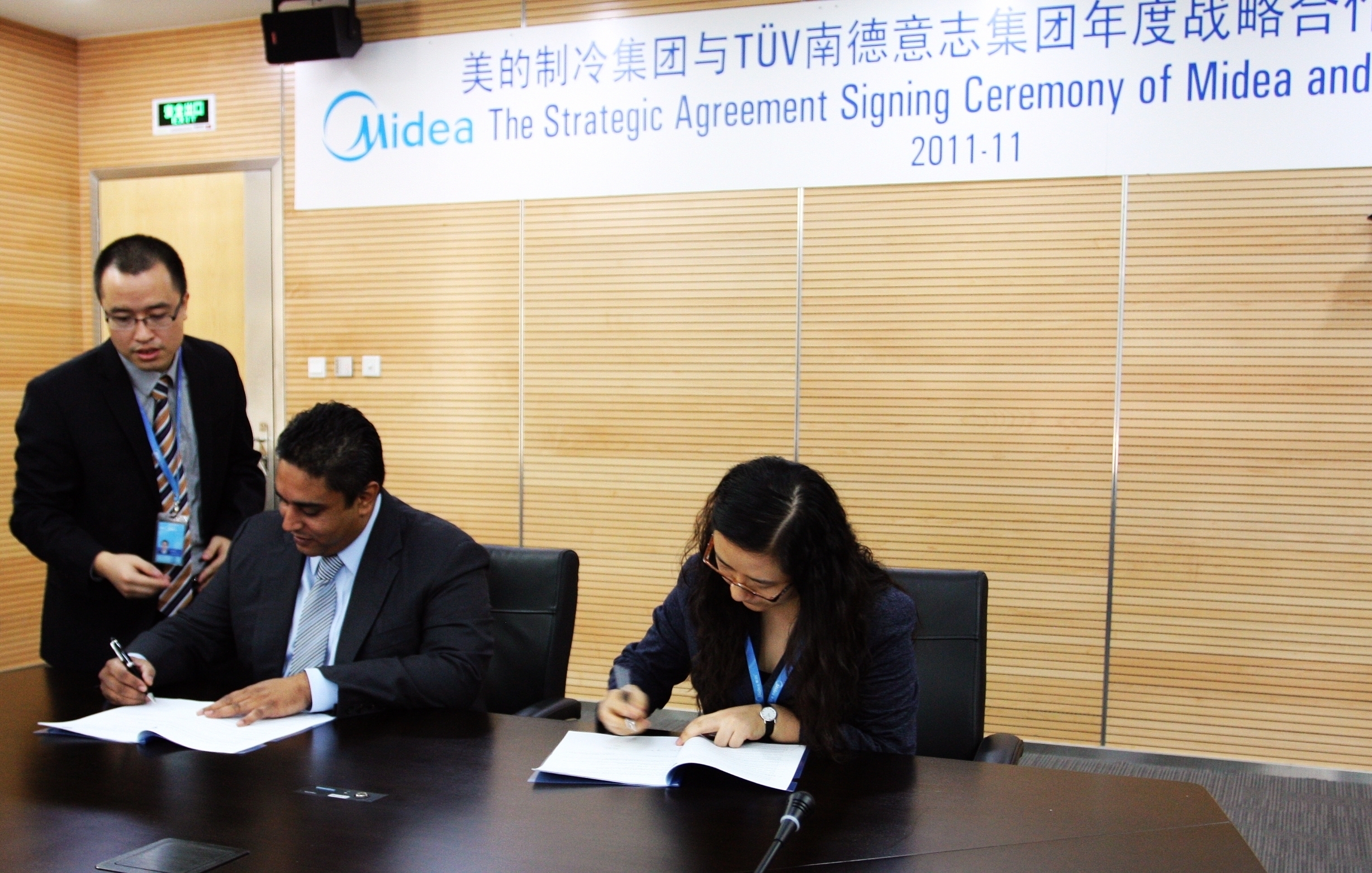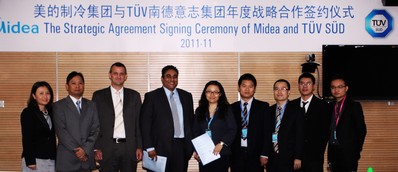 廣州2011年11月14日電 /美通社亞洲/ -- 2011年11月3日,TUV 南德意志集團(tuán)(以下簡(jiǎn)稱(chēng)“TUV SUD”)全球產(chǎn)品服務(wù)部首席執(zhí)行官 Ishan Palit 與美的集團(tuán)國(guó)際事業(yè)部副總裁劉敏女士在順德北滘美的集團(tuán)總部就雙方未來(lái)的合作模式達(dá)成戰(zhàn)略合作協(xié)議。這是繼去年九月份 TUV SUD 與美的集團(tuán)簽署全方位戰(zhàn)略合作協(xié)議之后,雙方再一次深入合作。此次合作協(xié)議的成功簽署,進(jìn)一步擴(kuò)大雙方合作的領(lǐng)域,TUV SUD 將繼續(xù)致力于縮短美的產(chǎn)品的認(rèn)證服務(wù)周期,加強(qiáng)海外產(chǎn)品監(jiān)管,幫助美的產(chǎn)品在發(fā)達(dá)地區(qū)的商業(yè)滲透,拓展海外市場(chǎng)。