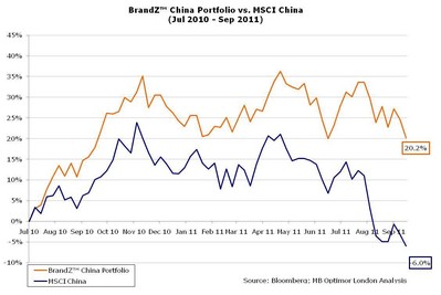 盡管2011年世界經(jīng)濟(jì)仍處在掙扎中,50強(qiáng)品牌的總市值增長(zhǎng)16%達(dá)到了3250億美元,略高于中國經(jīng)濟(jì)的5%。