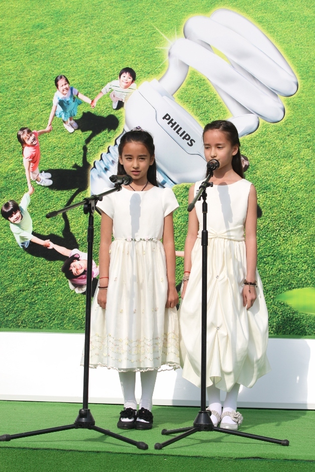 飛利浦照明2012“我行動,我綠動”啟動儀式上的另一個亮點是中國達人秀李林妲、李宛妲兩位精靈小姐妹的傾情助陣?!盎ǖ穆?,和雨林的路一樣,生長得如此動人美好……”伴隨著“花戀”旋律的想起,曾經(jīng)唱響中國達人秀舞臺的西雙版納小姐妹,也重新喚起了人們熱愛自然的天性。媽媽李旻果告訴大家,她們一家正致力于天籽再造雨林計劃,此次小姐妹前來支持飛利浦照明的活動,就是想通過“我行動,我綠動”這一平臺,呼吁人們多采取有利于環(huán)保的行為,“將白熾燈換成飛利浦的節(jié)能燈,綠色出行,節(jié)約能源,保護我們賴以生存的綠色家園?!碑斕欤w利浦照明現(xiàn)場向雨林精靈姐妹捐贈一千盞節(jié)能燈,希望她們能把節(jié)能環(huán)保的理念傳遞給家鄉(xiāng)的親人和朋友。