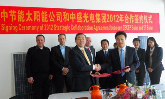 中國(guó)南京2012年4月26日電 /美通社亞洲/ -- 全球領(lǐng)先的一站式太陽(yáng)能電力解決方案的提供商 -- 中盛光電集團(tuán) ET Solar Group (下稱“ET”、“中盛光電”或“中盛”)日前與中節(jié)能太陽(yáng)能科技有限公司(下稱“中節(jié)能太陽(yáng)能”)聯(lián)合開(kāi)發(fā)建設(shè)海外光伏電站。
