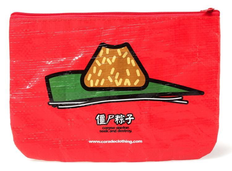本次僵尸小袋延續(xù)一貫的怪趣風(fēng)格,細(xì)看這位CORPSE,絕對(duì)不乏潮味,頭頂?shù)摹?字,大膽作風(fēng)。嘴邊粽粒殘香,吃完還不忘高呼“I LOVE ZONGZI”,可愛(ài)至極;而紅與黑早已成為這位“小僵尸”的專(zhuān)屬色,紅的一面象征著活力與熱情配以神秘靜寂的黑,盡顯僵尸本色,有沒(méi)有一種HOT的感覺(jué)?材質(zhì)上出于功能考慮,依舊選用編織覆膜,防水、耐磨、易清洗。整體而言,不繁復(fù)的設(shè)計(jì)卻也足夠引人側(cè)目 -- 既有僵尸元素,又囊括了傳統(tǒng)的粽子,可謂是混搭潮流的應(yīng)景之作。