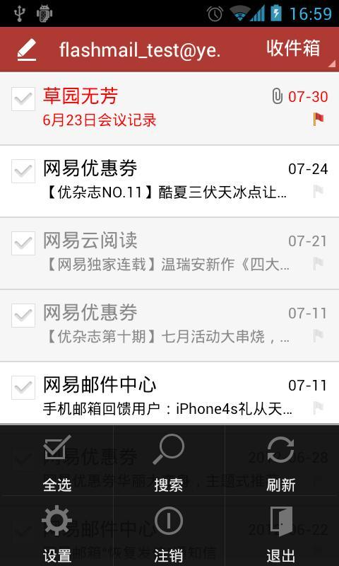 網(wǎng)易郵箱Android客戶端本地操作數(shù)據(jù)即時(shí)同步網(wǎng)頁郵箱,在郵箱上已經(jīng)閱讀的郵件,webmail同步為已讀狀態(tài),此外無論是刪除、移動還是標(biāo)記紅旗郵件等操作,任何時(shí)候都只需管理其中一個(gè)終端,其他終端即可實(shí)現(xiàn)同步。