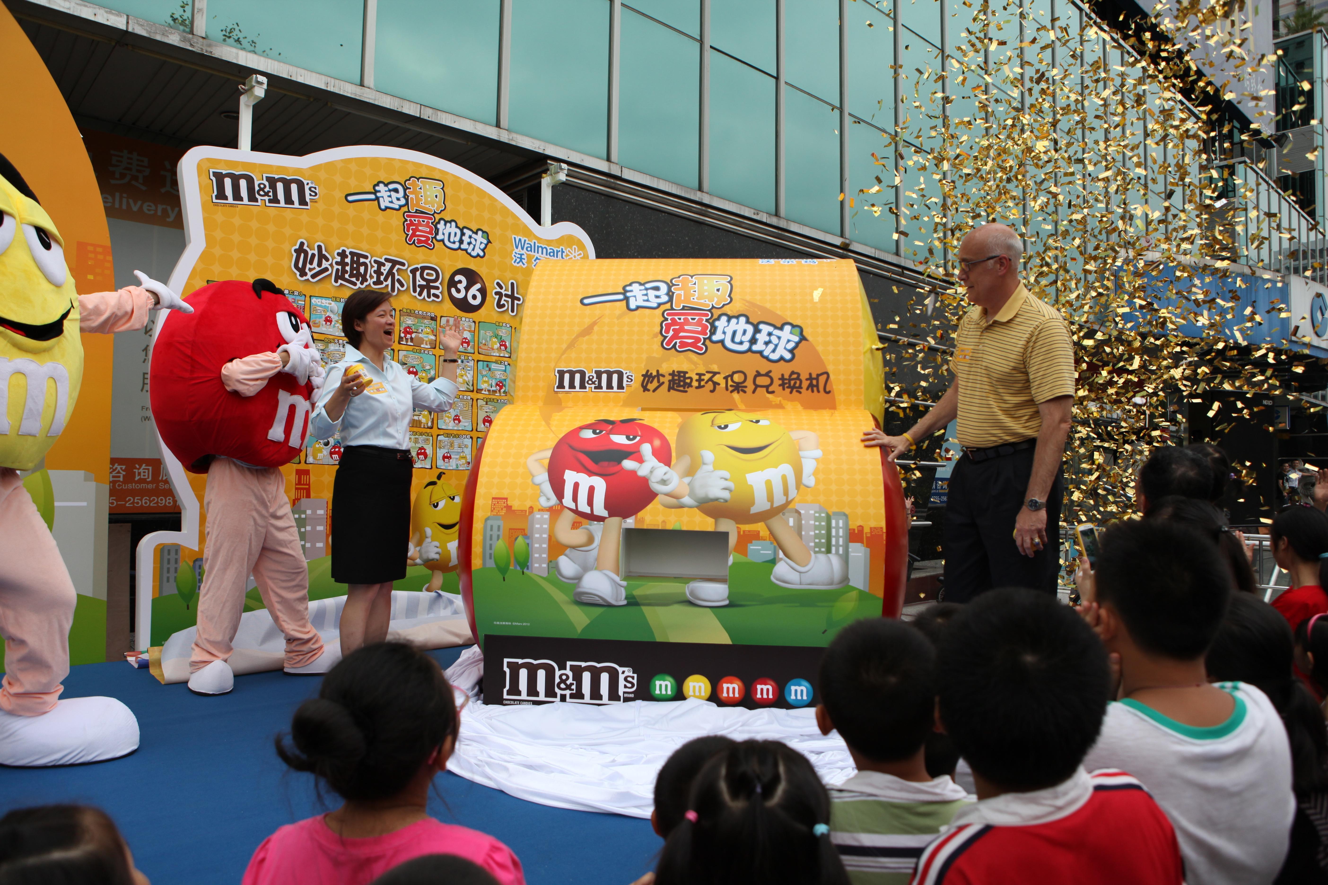 在啟動(dòng)儀式上,活動(dòng)環(huán)保大使m&m's的紅豆黃豆不僅帶來了別開生面的環(huán)保主題情景劇,更把妙趣環(huán)保兌換機(jī)帶到現(xiàn)場(chǎng),邀請(qǐng)?jiān)趫?chǎng)嘉賓以及顧客投進(jìn)m&m's巧克力的包裝材料來兌換利用廢舊塑料制作而成的環(huán)保杯或環(huán)保袋,以鼓勵(lì)消費(fèi)者身體力行地參與到環(huán)?;顒?dòng)中。