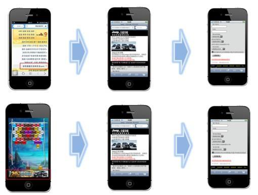 Jeep 以男性為主的受眾人群特性,力美廣告精選新聞、財經(jīng)、資訊、體育等手機 WAP 及APP媒體,借助力美廣告平臺優(yōu)勢,采取機型定向技術,鎖定高端智能機手機用戶,精準覆蓋目標受眾。針對 WAP 網(wǎng)站,潛在用戶可點擊 Banner 后進入全屏廣告,并可登陸試駕頁面,填寫相關信息,申請試駕;針對 APP 內(nèi)置廣告,潛在用戶可點擊 Banner 后直接跳轉(zhuǎn)至活動移動頁面。