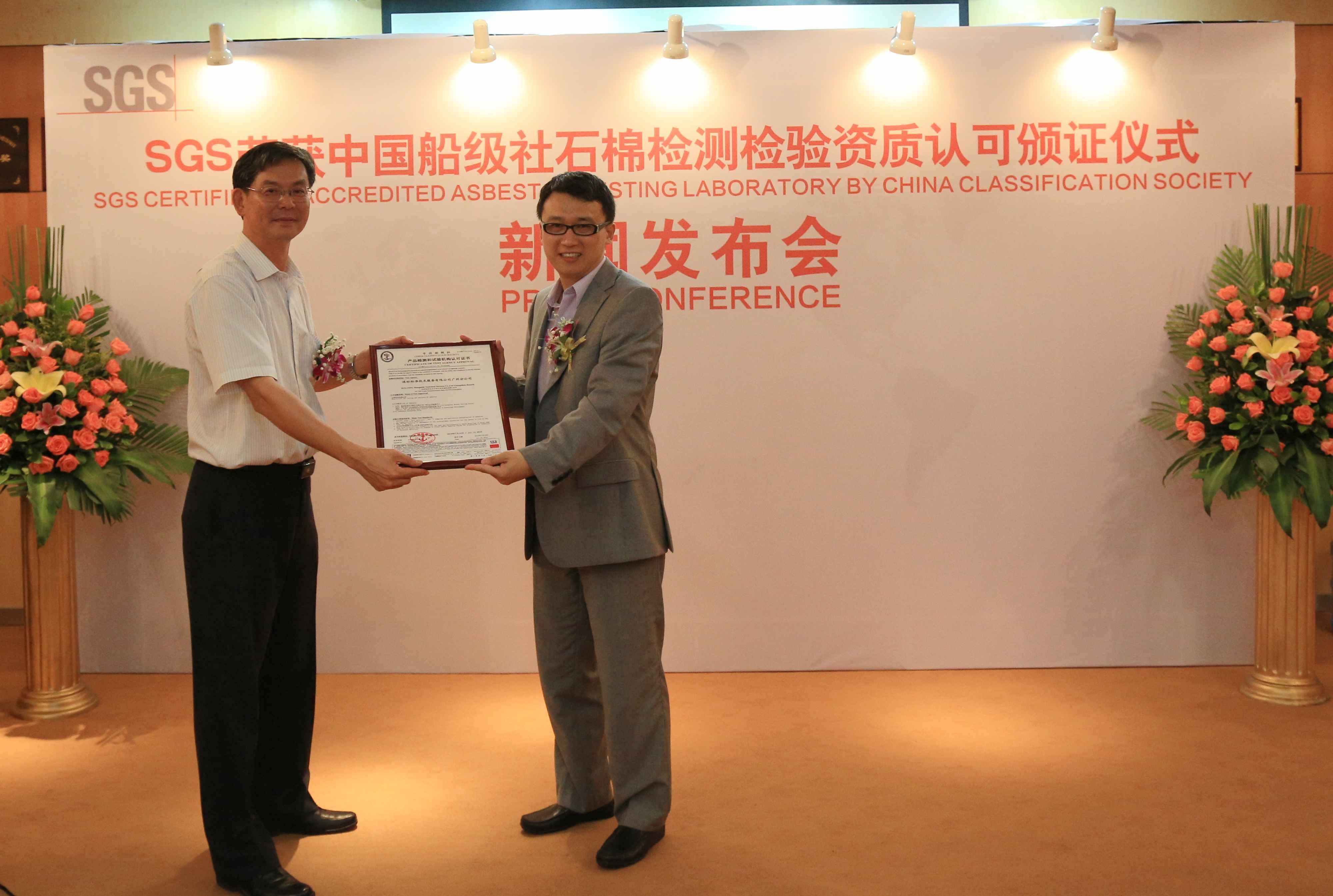 上海2012年9月24日電 /美通社/ -- 全球領(lǐng)先的檢驗(yàn)、鑒定、測試和認(rèn)證機(jī)構(gòu),SGS通標(biāo)標(biāo)準(zhǔn)技術(shù)服務(wù)有限公司(以下簡稱SGS)現(xiàn)已正式獲得中國船級(jí)社(以下簡稱CCS)石棉檢測檢驗(yàn)資質(zhì)認(rèn)可,并于9月21日在SGS廣州分公司舉辦“SGS榮獲中國船級(jí)社石棉檢測檢驗(yàn)資質(zhì)認(rèn)可頒證儀式”新聞發(fā)布會(huì)。儀式現(xiàn)場,CCS向SGS頒發(fā)了中國船級(jí)社石棉檢測檢驗(yàn)資質(zhì)認(rèn)可證書。CCS副總經(jīng)理陳裕彬、CCS產(chǎn)品檢驗(yàn)處處長鄭曉松、CCS市場總監(jiān)王立新,SGS消費(fèi)品檢測服務(wù)部總經(jīng)理杜佳斌、SGS華南區(qū)副總監(jiān)柯贊賢、SGS科技電子產(chǎn)品限用物質(zhì)測試服務(wù)部副總監(jiān)李信柱及眾多企業(yè)高層代表齊聚現(xiàn)場,共同見證這一值得紀(jì)念的時(shí)刻。