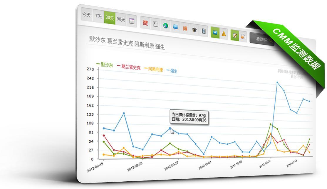 北京2012年12月10日電 /美通社/ -- 全球領(lǐng)先的企業(yè)傳播服務(wù)機構(gòu) -- 美通社今日宣布,旗下“中國網(wǎng)絡(luò)與社交媒體監(jiān)測”(China Media Monitoring,以下簡稱 CMM)完成重要升級,通過重設(shè)關(guān)鍵詞體系、增加標(biāo)簽式數(shù)據(jù)篩選等,升級后的 CMM 將使用戶獲得更加精準(zhǔn)、快速、細分和直觀的媒體監(jiān)測結(jié)果。企業(yè)用戶可登錄 http://cmm.prnasia.com 了解詳情及申請試用。
