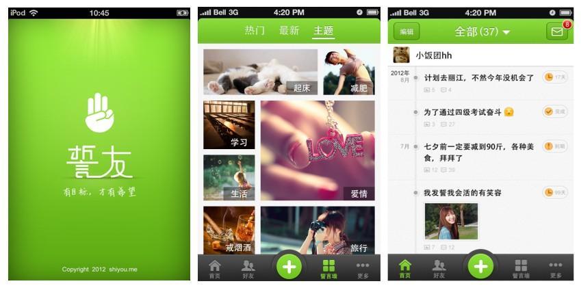 《誓友》最初的創(chuàng)意源于人們在現(xiàn)實生活中經(jīng)常發(fā)生的“發(fā)誓“,這一表達(dá)個人情感和建立目標(biāo)的有趣方式。有很多人喜歡發(fā)誓,但誓言往往落空,這是因為缺乏最終成功的秘籍。移動互聯(lián)網(wǎng)迅速發(fā)展的今天,人人都有手機,《誓友》的誕生希望能夠幫助用戶實現(xiàn)他們的誓言,所謂生活有目標(biāo)就有希望。從意義上來講,這也是之前移動應(yīng)用領(lǐng)域中所沒有的。