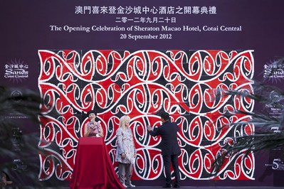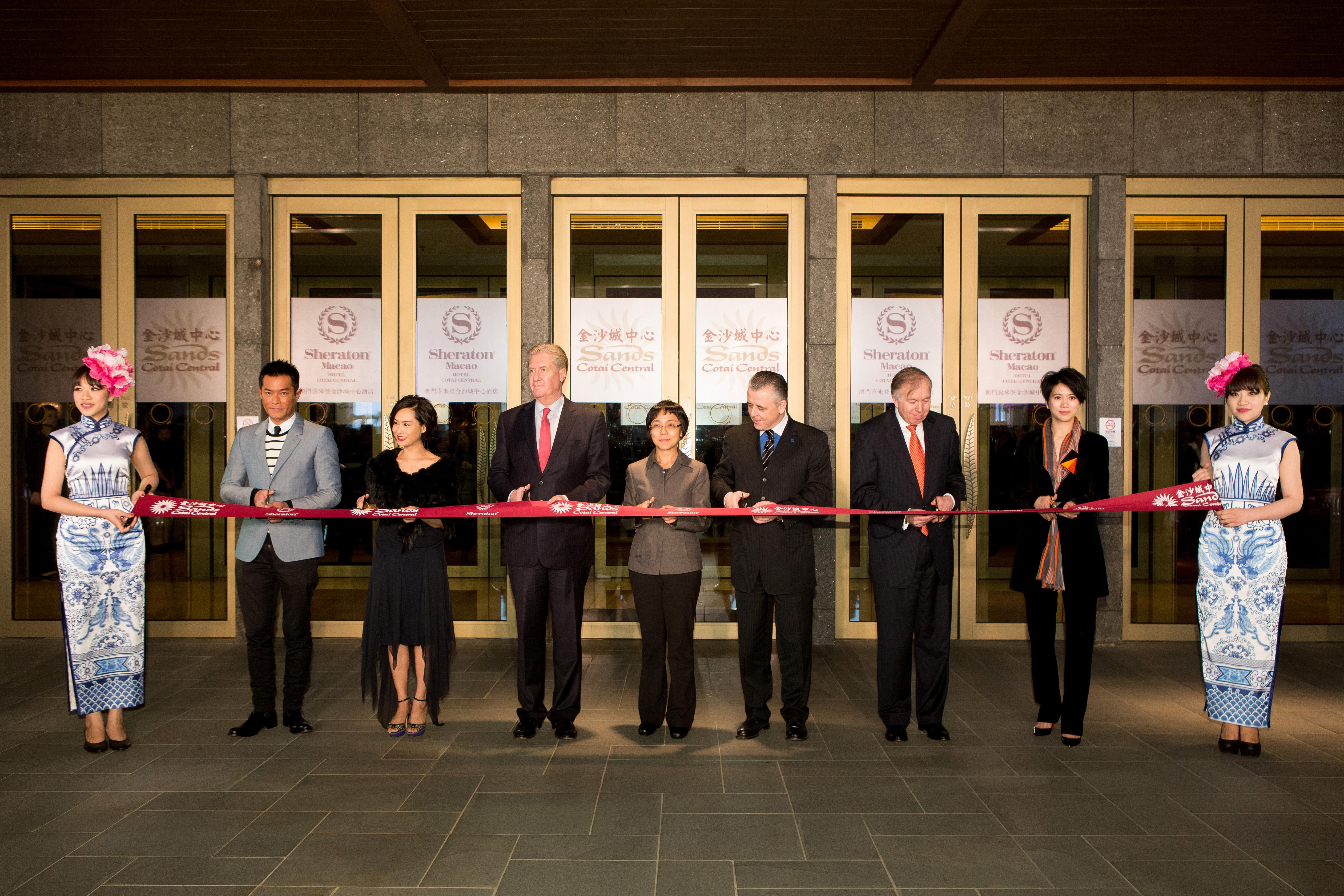 金沙城中心于星期一以一場星光熠熠的活動慶祝澳門喜來登金沙城中心酒店宏地樓正式竣工,當(dāng)中包括鼓樂及醒獅表演、燃放爆竹以及剪彩儀式。宏地樓設(shè)有2,067間裝潢雅致的全新客房及套房,將酒店的總房間數(shù)量增加至3,896間,使酒店成為全澳門較大型以及喜達(dá)屋酒店與度假村國際集團(tuán)旗下全球較大的酒店。從左面第二位開始:古天樂、朱茵、金沙中國有限公司總裁兼行政總裁愛德華-卓思先生、澳門特別行政區(qū)政府旅游局局長文綺華女士、澳門喜來登金沙城中心酒店董事總經(jīng)理若瑟夫-道普先生、金沙中國有限公司行政副總裁兼營運總裁大衛(wèi)-西斯克先生、袁詠儀