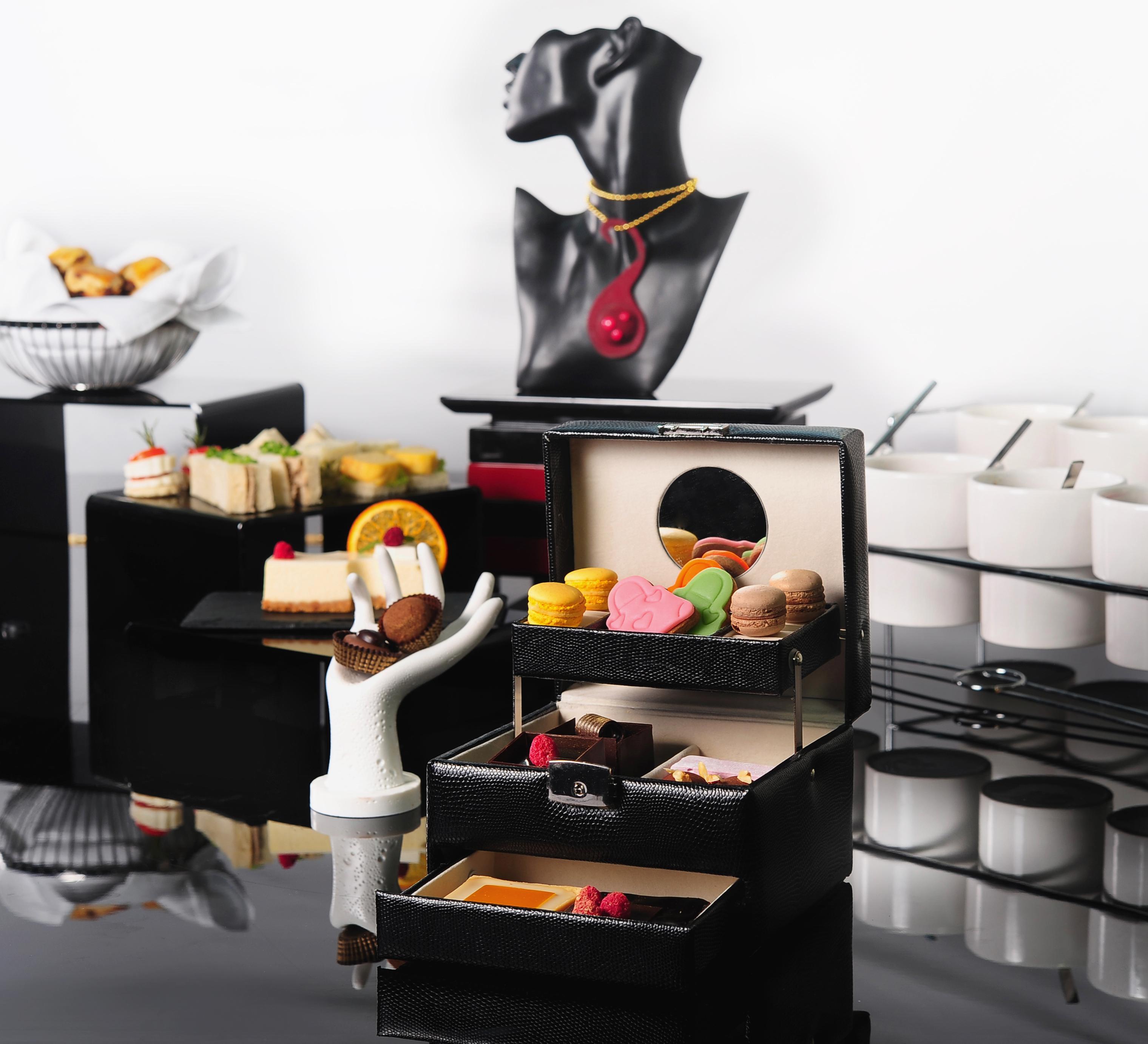 來自亞洲頂級巧克力甜品大師 Cary 甄選9款優(yōu)雅精致的巧克力藝術甜品,多彩絢麗。它們被放置在三層式的奢華皮質珠寶盒中,整個擺盤獨具匠心。如果深吸一口,甜而不膩的巧克力濃香即刻撲鼻而來。