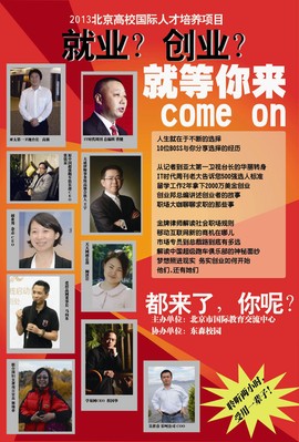 東森校園CEO溫質(zhì)銘特別邀請了香港亞太第一衛(wèi)視首席運(yùn)營官高強(qiáng)先生、聯(lián)合國婦女署中國項目官員郭瑞香女士、IT時代周刊總編輯曹健先生、大成律師事務(wù)所高級合作人王宇先生、學(xué)易網(wǎng)CEO程國華先生、天天網(wǎng)副總裁闞洪巖女士、愛樣品網(wǎng)董事長馬向東先生、馬騰國際執(zhí)行董事張銘顯先生、泰華尚品總經(jīng)理盧洪濤先生9位業(yè)界精英走進(jìn)了北京化工大學(xué)、中國政法大學(xué)、北京林業(yè)大學(xué)、東方大學(xué)城、華北電力大學(xué)、北京物資學(xué)院、北京石油化工學(xué)院、北京聯(lián)合大學(xué)、中央民族大學(xué)、首都經(jīng)濟(jì)貿(mào)易大學(xué)、中國勞動關(guān)系學(xué)院。嘉賓們圍繞國際形勢,結(jié)合大學(xué)生的就業(yè)現(xiàn)實和創(chuàng)業(yè)需求進(jìn)行自身成長經(jīng)歷、創(chuàng)業(yè)歷程、海外工作等方面的分享。