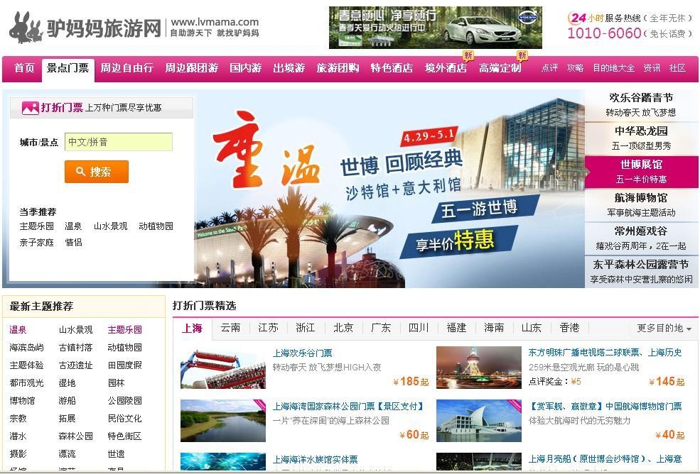 目前,驢媽媽旅游網(wǎng)已經(jīng)形成了以打折門票、自由行、度假酒店為主體,同時兼顧跟團游、長途游、出境游、旅游團購等業(yè)務(wù),為游客出行提供一站式旅游服務(wù),并最終打造成為以“自助游”為核心特色的綜合型旅游網(wǎng)站。
