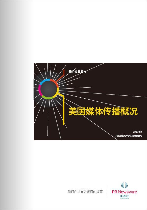 北京2013年4月26日電 /美通社/ -- 美通社今日推出《美國媒體傳播概況》白皮書,旨在幫助在美國做公關傳播的中國企業(yè)和機構了解美國媒體環(huán)境。白皮書從傳統(tǒng)、在線和新媒體等不同媒體形態(tài)入手,對美國媒體傳播情況做了基本描述,包含綜述、研究數(shù)據(jù)、趨勢分析、重點媒體排名等內容。白皮書還針對如何在美國進行企業(yè)新聞傳播提供了建議。點擊此處下載白皮書。