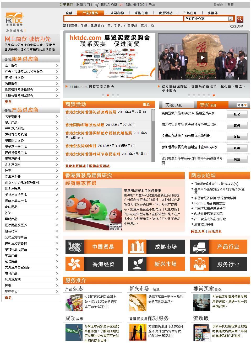 作為結(jié)合書、網(wǎng)、展的全方位外貿(mào)推廣平臺(tái),是香港貿(mào)發(fā)局獨(dú)有的優(yōu)勢(shì),有利于幫助中小企業(yè)拓展環(huán)球業(yè)務(wù)、協(xié)助內(nèi)地企業(yè)走出去。香港貿(mào)發(fā)局網(wǎng)上貿(mào)易平臺(tái) -- “貿(mào)發(fā)網(wǎng)” www.hktdc.com 現(xiàn)時(shí)匯聚12萬優(yōu)質(zhì)供應(yīng)商用戶群,當(dāng)中包括貿(mào)發(fā)局展會(huì)參展商及產(chǎn)品雜志廣告商;登記買家超過130萬,包括每年到港參加貿(mào)發(fā)局展覽會(huì)的優(yōu)質(zhì)買家,全年不斷經(jīng)“貿(mào)發(fā)網(wǎng)”進(jìn)行采購。除此之外,貿(mào)發(fā)局每年舉辦30多項(xiàng)頂級(jí)貿(mào)易展覽會(huì),當(dāng)中3個(gè)是全球之冠,9個(gè)為亞洲較大。而香港貿(mào)發(fā)局每年亦發(fā)行15類產(chǎn)品雜志及數(shù)十本專題特刊,直達(dá)全球500萬名買家。
