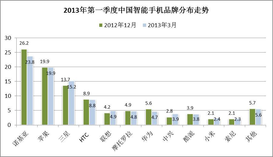 近期備受關(guān)注的三星憑借著多元化的產(chǎn)品線,多價位的機(jī)型分布,再次成為本季度的較大贏家,上升了1.5個百分點(diǎn)。Kantar Worldpanel 移動通訊消費(fèi)者指數(shù)中國區(qū)客戶總監(jiān)郁毅指出:三星近期發(fā)布的Galaxy S4在市場上取得了前所未有的好成績,作為歷史上首發(fā)月銷售較快的Android手機(jī),三星如果趁勢發(fā)布Galaxy S4的迷你版,勢必完美布局高端市場, 進(jìn)一步挑戰(zhàn)蘋果在中國的地位。