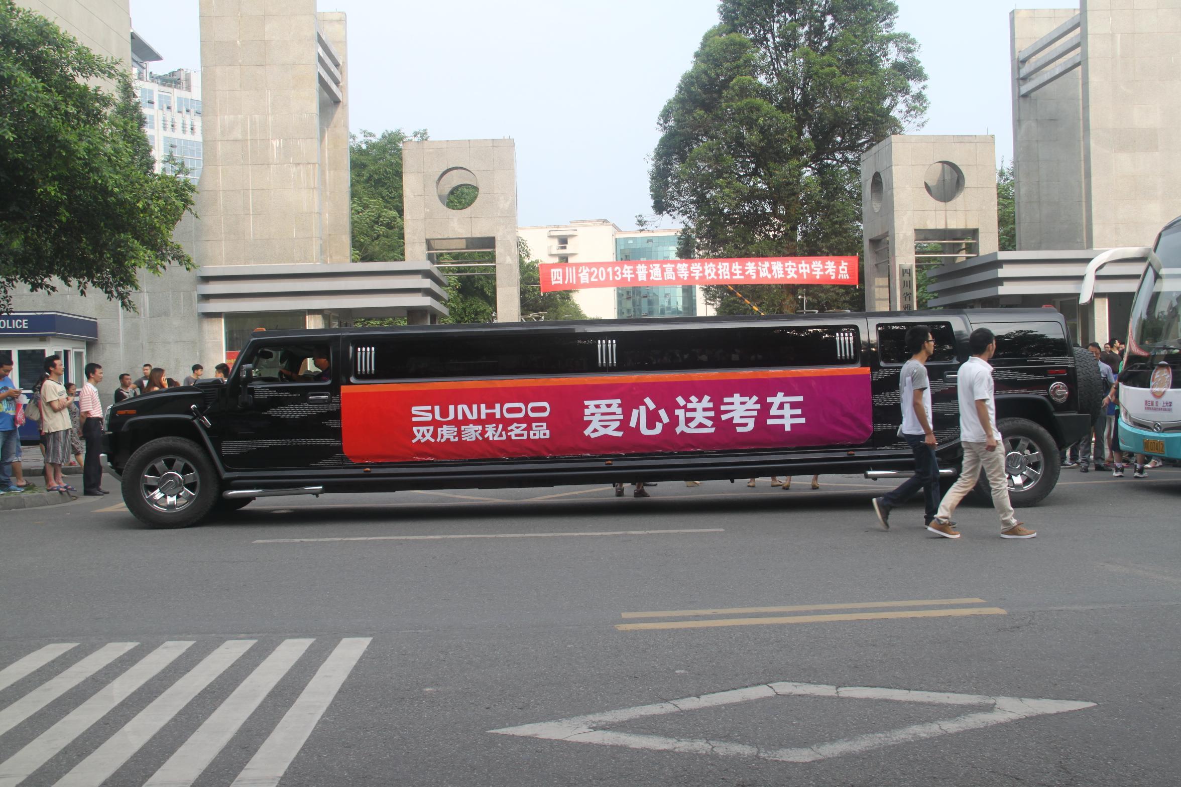 雅安的考生更是牽動(dòng)著每一個(gè)人的心,本次雅安地區(qū)愛(ài)心送考,愛(ài)心送考車隊(duì)由加長(zhǎng)悍馬、凱迪拉克、大巴車等近20輛車組成。為預(yù)防高考意外情況的發(fā)生,雙虎家私在考場(chǎng)外特設(shè)置了“愛(ài)心加油站”,為考生提供2B鉛筆、簽字筆、太陽(yáng)傘、坐凳、礦泉水、防暑藥品等,更設(shè)有家長(zhǎng)等待休息區(qū)。