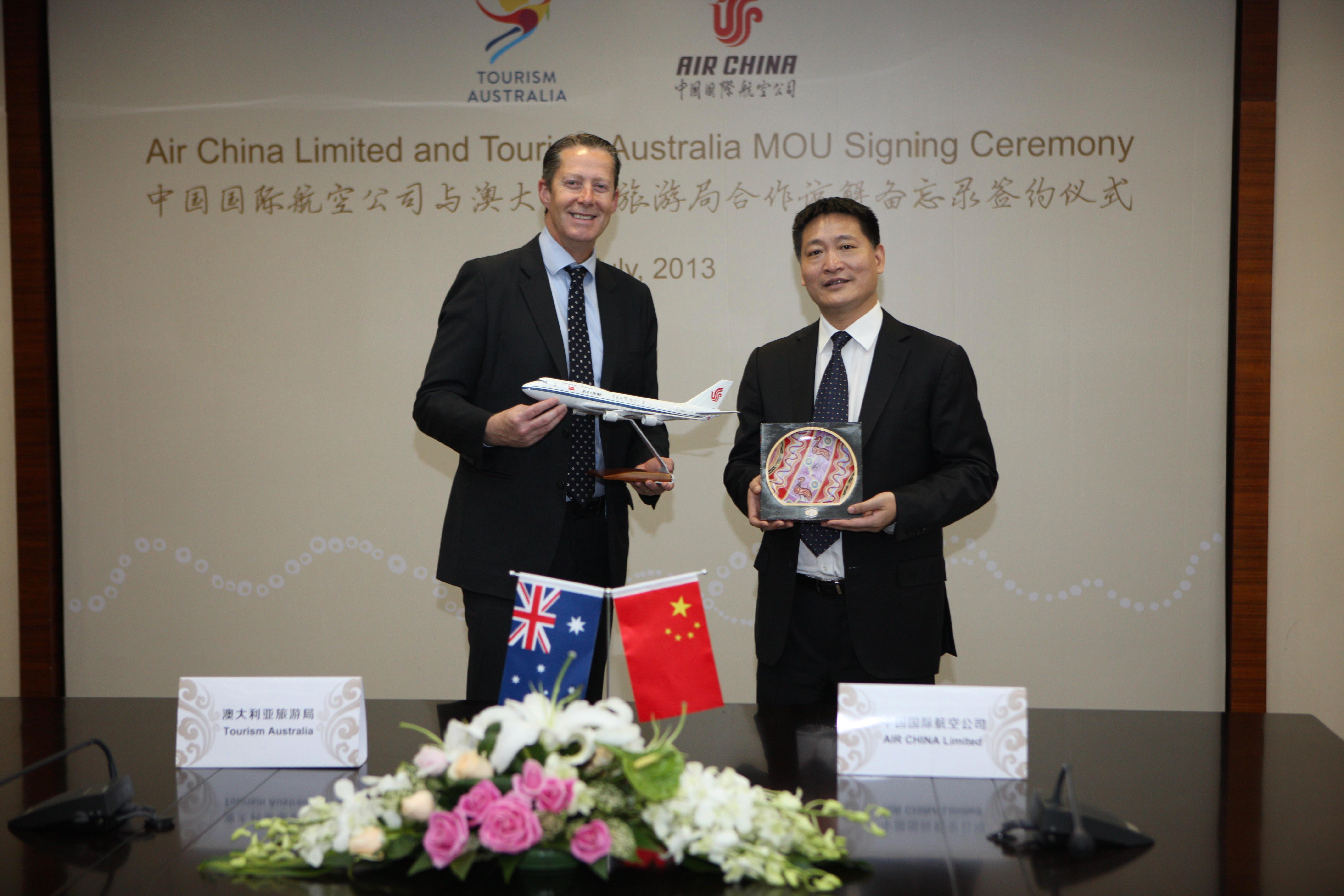 北京2013年7月2日電 /美通社/ -- 2013年7月1日,中國國際航空股份有限公司(以下簡稱“國航”)與澳大利亞旅游局(以下簡稱“澳旅局”)舉辦合作諒解備忘錄簽字儀式,雙方高層就赴澳旅游市場推廣及航空運(yùn)力優(yōu)化配置達(dá)成協(xié)議。國航副總裁王明遠(yuǎn)及澳旅局行政總裁麥勤偉(Andrew McEvoy)代表雙方簽署了備忘錄。