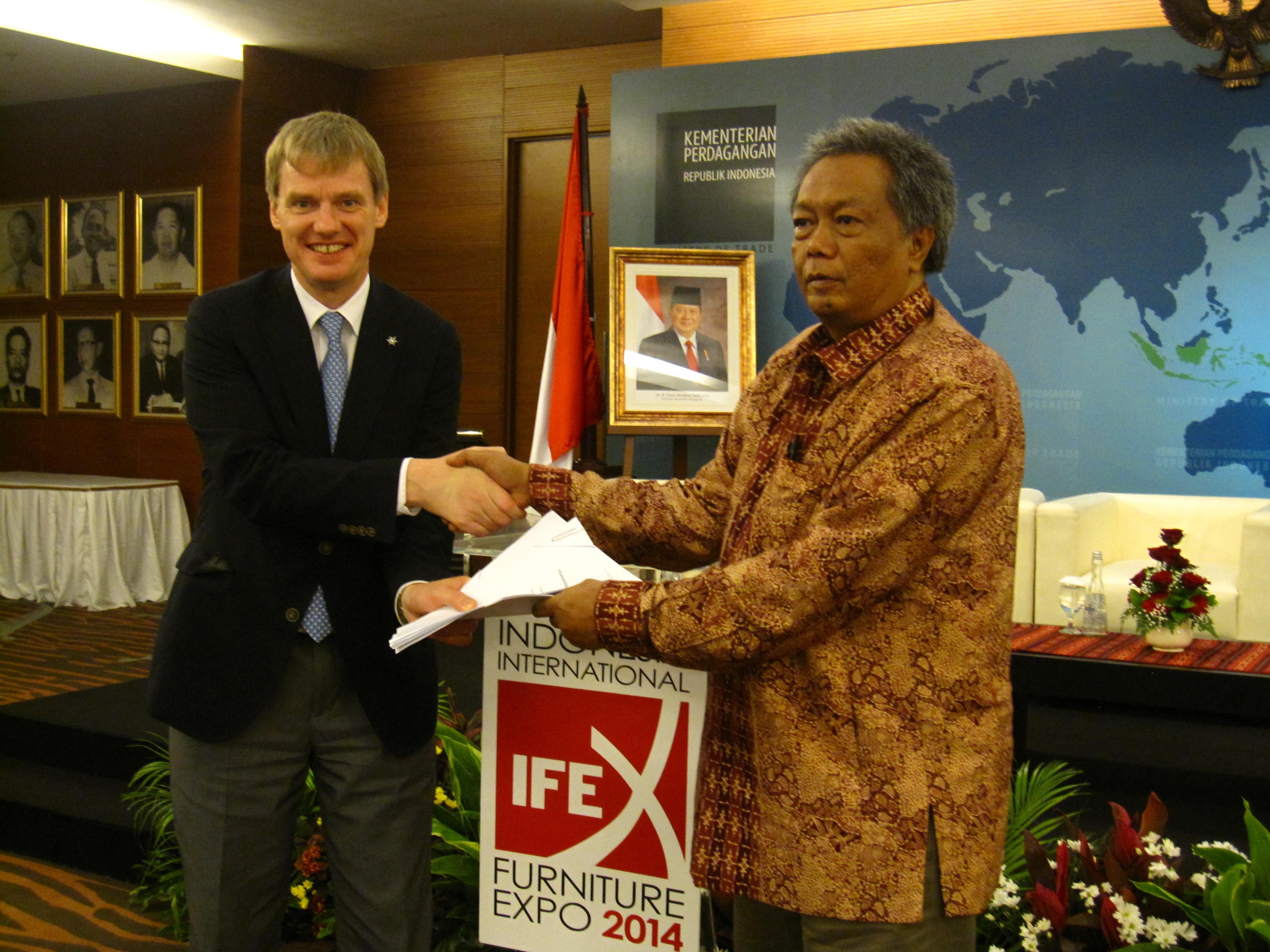 印尼雅加達2013年7月9日電 /美通社/ -- 亞洲博聞聯(lián)同印尼家具協(xié)會 (AMKRI) 將舉辦印尼國際家具展 (IFEX)。展會將于2014年3月11至14日在雅加達國際展覽中心 (JI Expo) 及2014年3月12至15日在雅加達會議中心 (JCC) 舉行。亞洲博聞高級副總裁栗棲尹武與AMKRI主席Soenoto先生、印尼工業(yè)局農(nóng)業(yè)部部長Benny Wahyudi先生及印尼貿(mào)易局國家出口貿(mào)易發(fā)展部部長Gusmardi Bustami先生在7月5日于印尼貿(mào)易局舉行的新聞發(fā)布會中宣布本次合作。