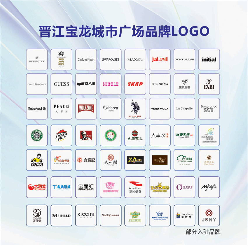 依托于寶龍強大的品牌號召力、一流的管理團隊和招商團隊,晉江寶龍城市廣場從立項之日便受到眾多品牌青睞。尤其是國際一線品牌紛紛搶灘“登陸”,其中,GIVENCHY、Calvin Klein、JUST CAVALLI、MAX&Co首次登陸泉州,并將與Kent&Curwen、SWAROVSKI、NICOLE、CKJEANS、DKNY JEANS 、GUESS、INITIAL等其它國際大牌一起創(chuàng)造泉州商業(yè)的新高度。大潤發(fā)超市、金逸影城、寶麗匯、紅館量販KTV、浩沙健身、寶龍樂園、都都美容、MJ STYLE、越薈酒樓、蔡美月婚紗等十大主力店鼎力加盟。餐飲美食業(yè)態(tài)同樣布局精到,國際咖啡巨頭星巴克、川菜第一品牌巴國布衣、百勝餐飲旗下肯德基和必勝客、小肥羊、中國牛排大亨豪客來、全國第一中式快餐連鎖真功夫、私房菜傳奇湖碟軒等30多家各具風(fēng)味的餐飲品牌將晉江寶龍城市廣場打造成一個美食的天堂。目前,所有的招商已基本完成,餐飲類完成100%招商。